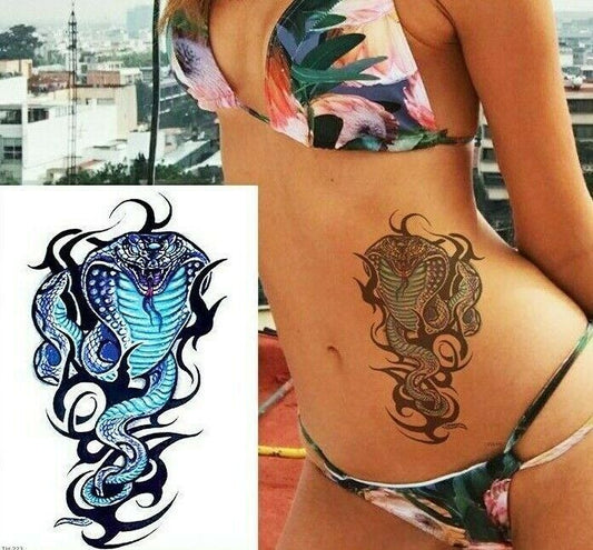 Cobra Snake Temporary Tattoo Waterproof Tattoos Women Mens Fake Sticker Arm Leg
