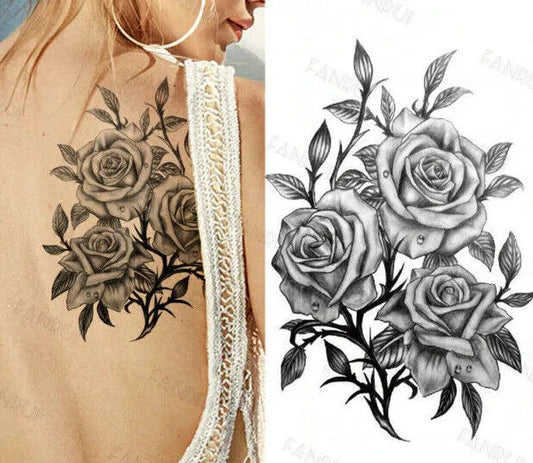 Sexy Rose Tattoo Temporary Tattoos Fake Sticker Womens Arm Leg Thigh Waterproof