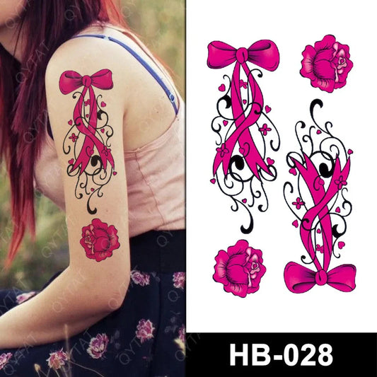 Pink Ribbons Bow Roses Temporary Tattoos Womens Leg Body Waterproof Sexy Tattoo