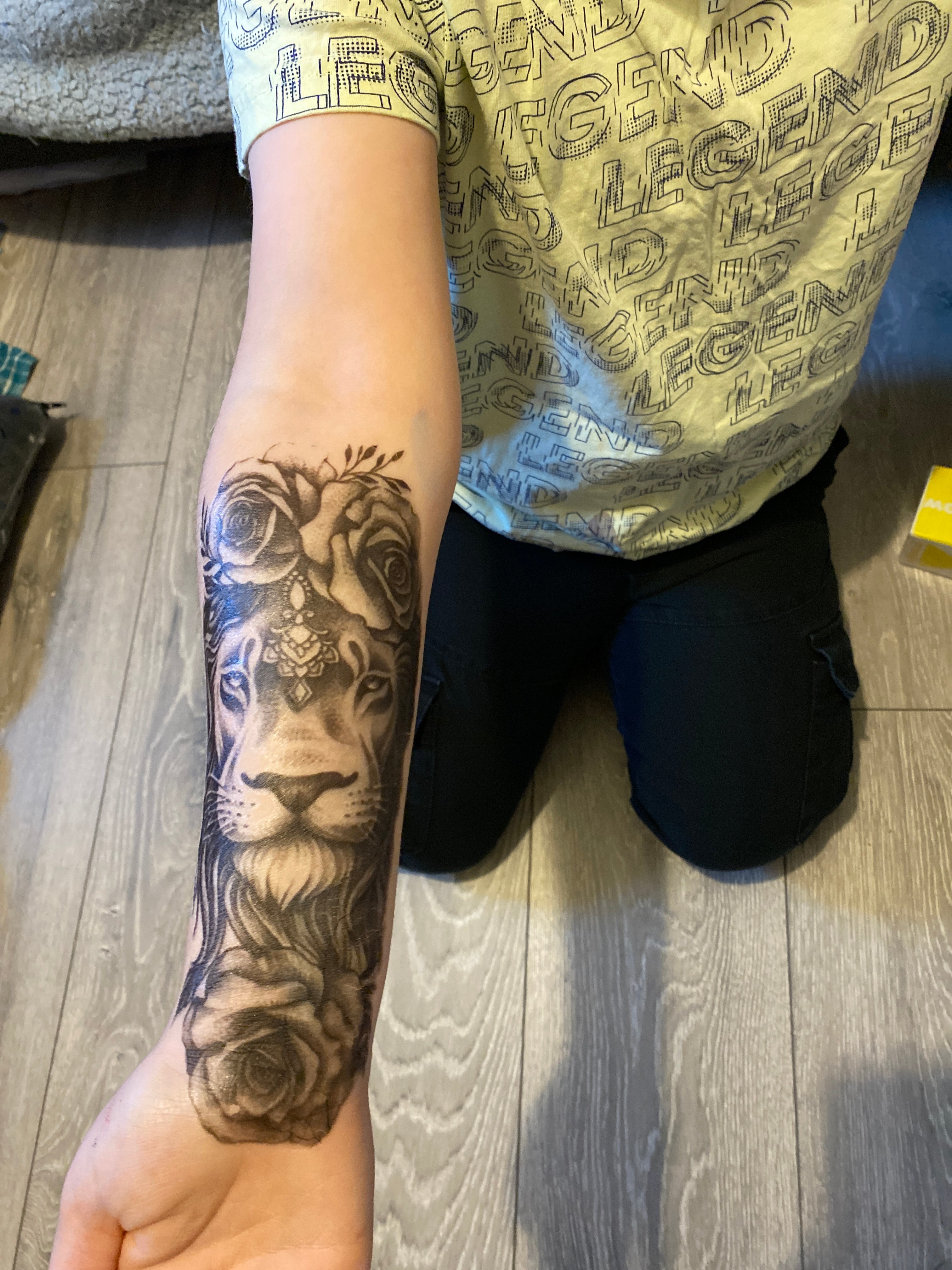 Lion Playing Cards Flowers Mens Womens Temporary Tattoo Fake Tattoos Waterproof