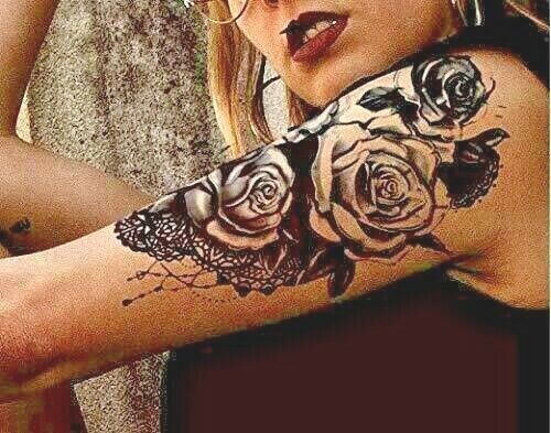 Black Lace Rose Temporary Tattoos Womens Waterproof tattoo Fake Sticker Sexy