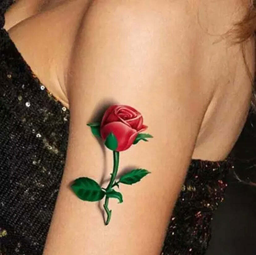 3D Rose Red Roses Flower Tattoos Womens Tattoo Fake Sticker Waterproof