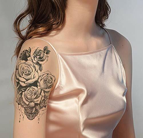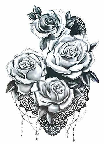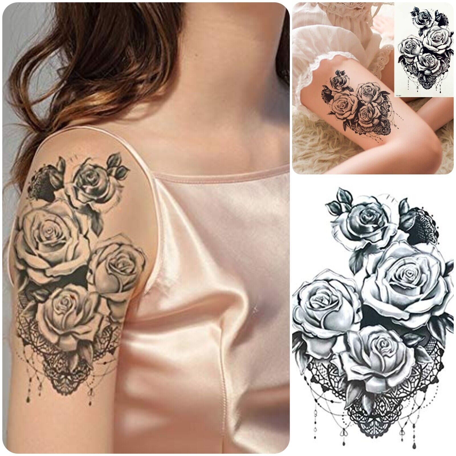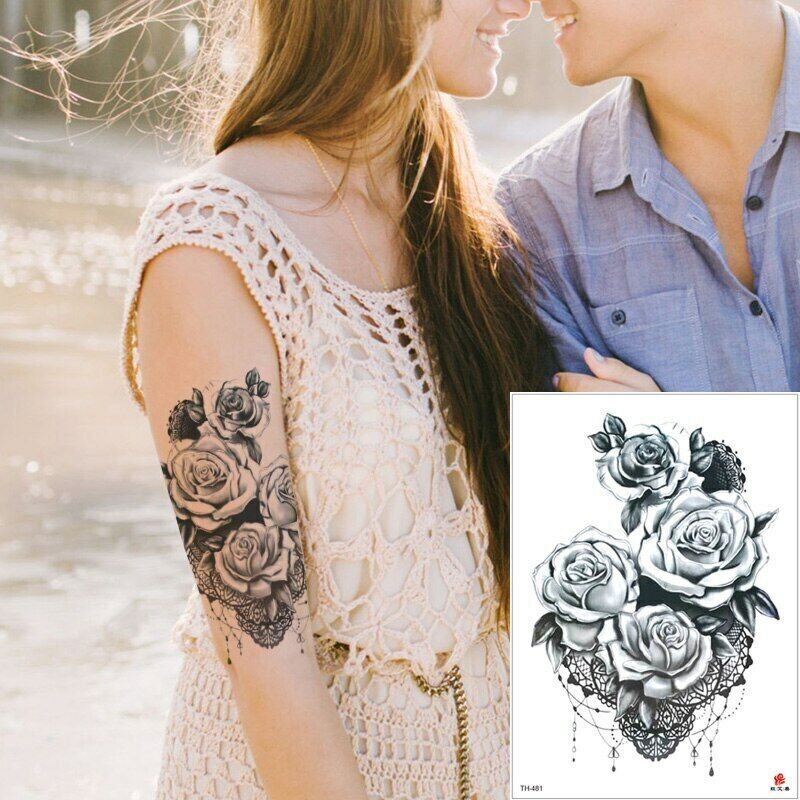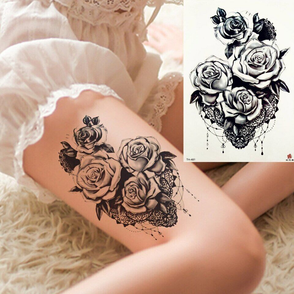 Black Lace Rose Temporary Tattoos Womens Waterproof tattoo Fake Sticker Sexy