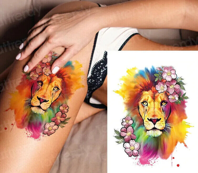 Lion Flower Temporary Tattoo Sticker Womens Waterproof tattoos Fake Arm Leg