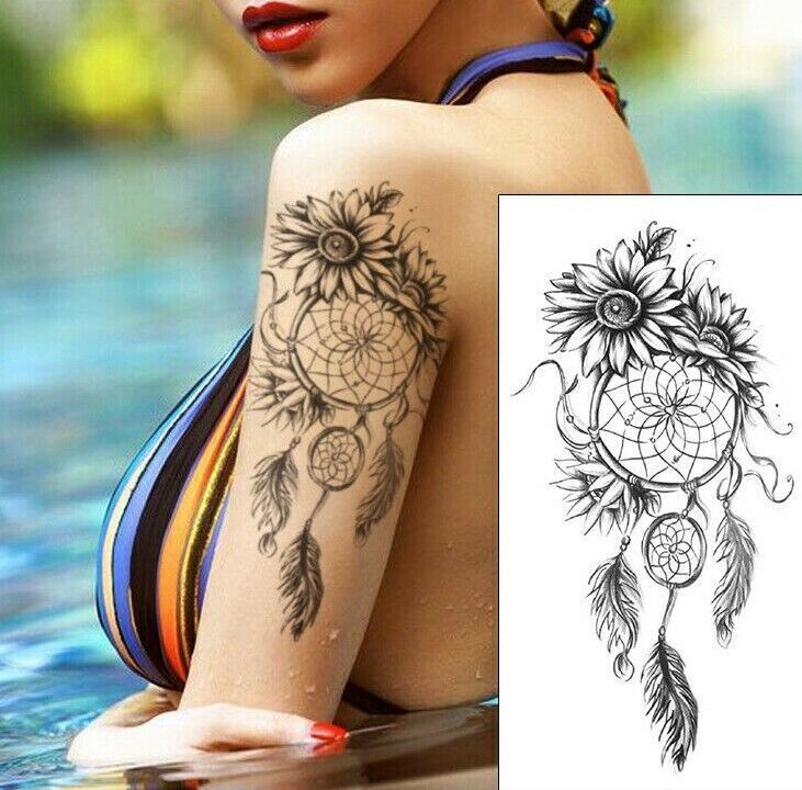 Dream Catcher Spirit Feather Flower Temporary Tattoo Fake Sticker Womens Mens UK