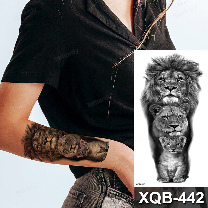 Lions Mother Baby Father Temporary Tattoo Women Men Arm Leg Fake Waterproof