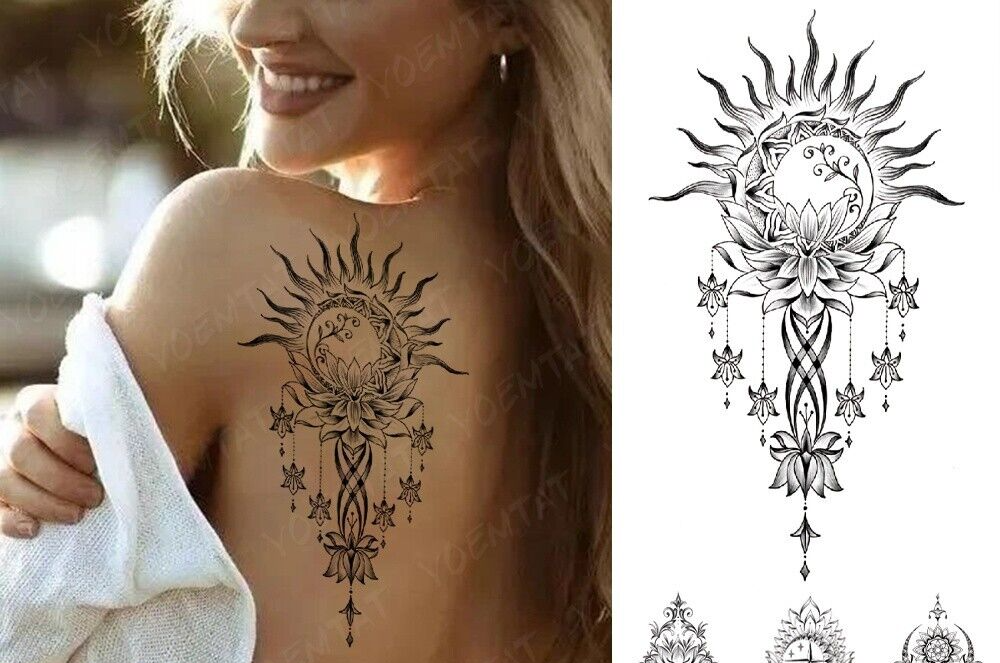 Fire Lotus Totem Temporary Tattoo Fake Sticker Womens Mens Arm Leg Thigh Chest