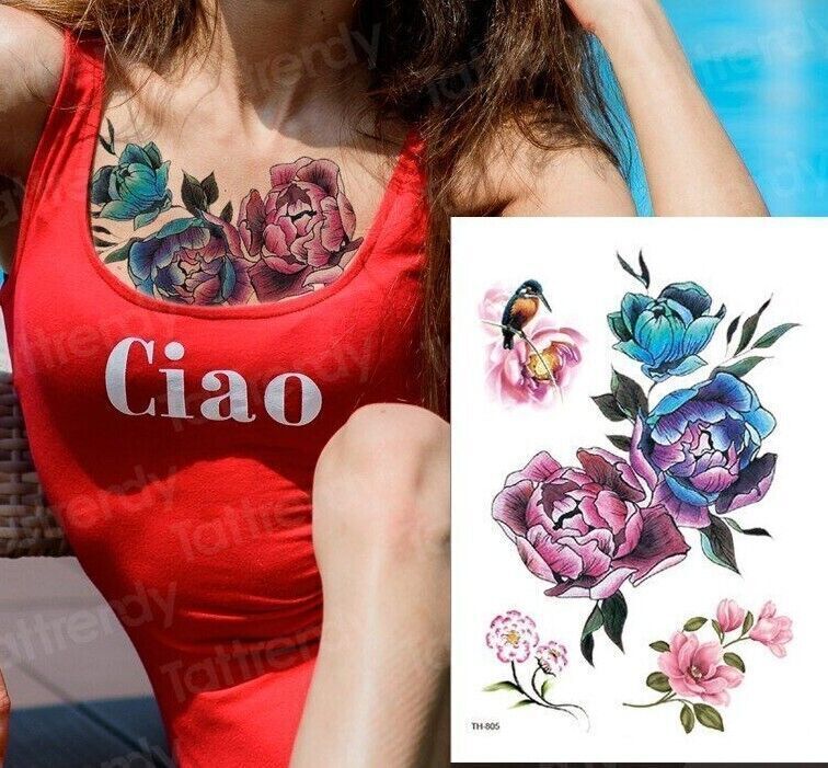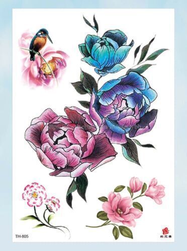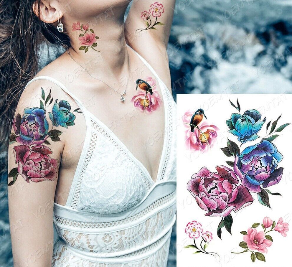 Flowers Bird Womens Temporary Tattoos Fake Sticker Tattoo Chest Arm Waterproof