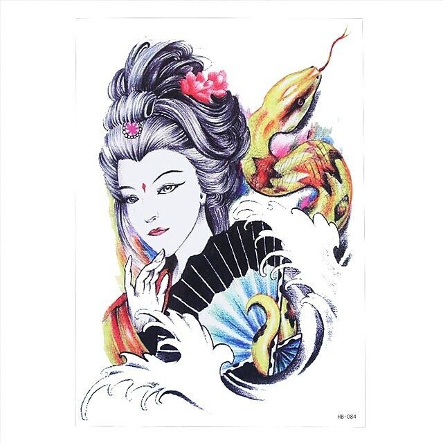 Japanese Temporary Tattoo Geisha Girl Snake Waterproof Fake Sticker Women Mens