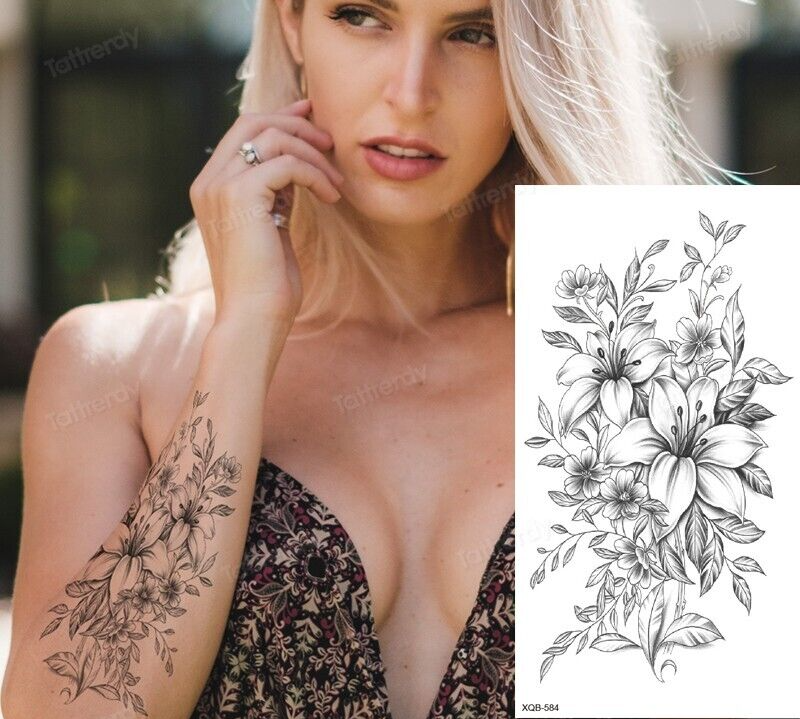 Lily Flowers Womens Temporary Tattoo Fake Waterproof Leg Thigh Chest Back Arm