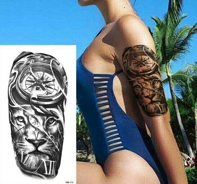 Lion & Compass, Time Temporary Tattoo Fake Press Sticker Women Mens