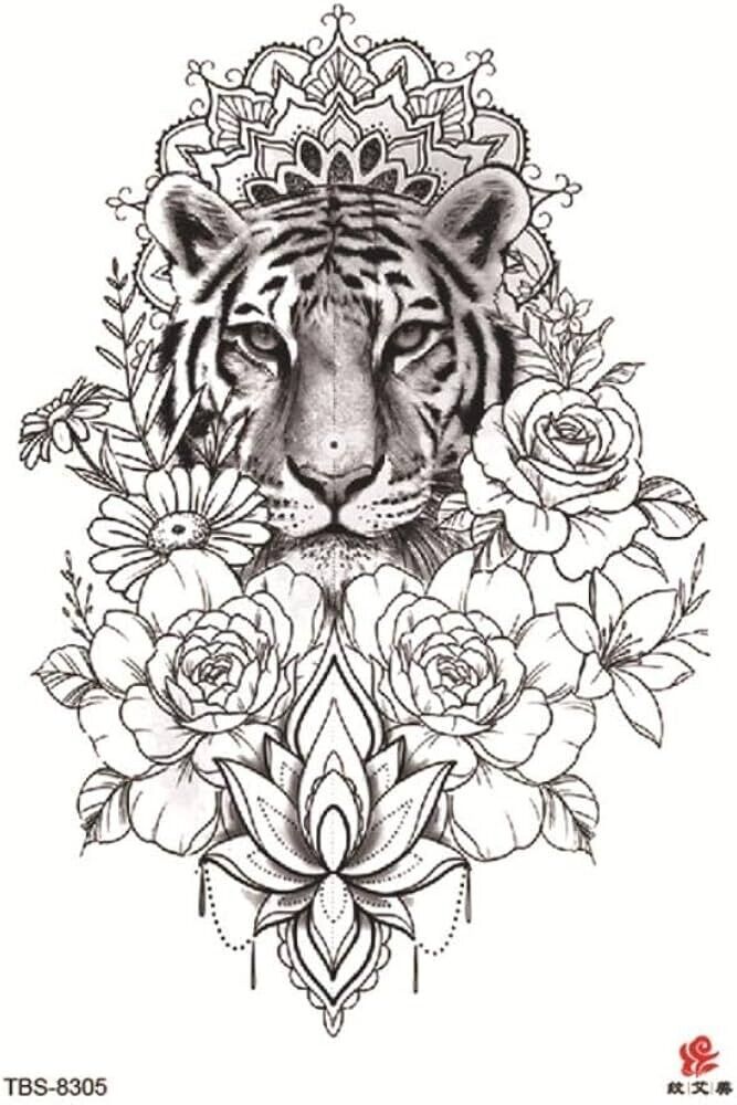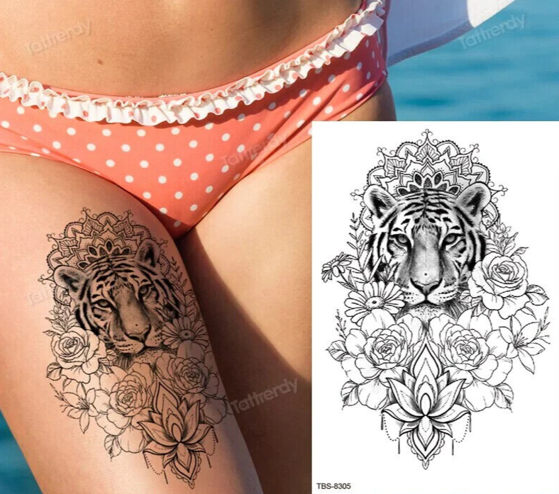 Tiger Flowers Temporary Tattoo Womens Tattoos Arm Leg Thigh Sleeve Fake Sticker