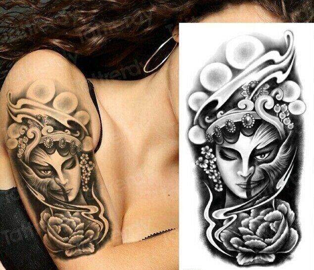 Masked Woman Flowers Waterproof Temporary Tattoo Fake Sticker Womens tattoos