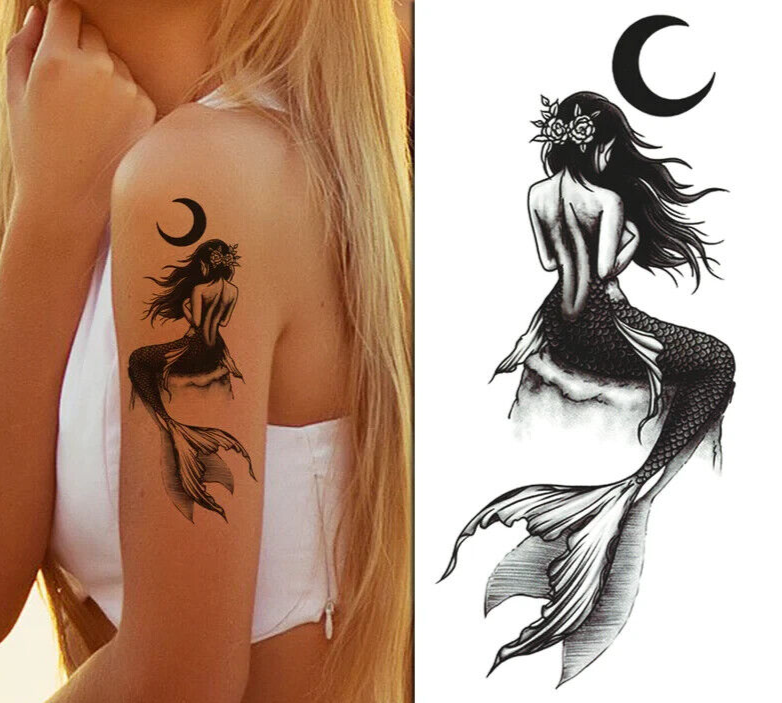 Mermaid Womens Temporary Tattoos Arm Tattoo Fake Body Chest Back Moon Waterproof