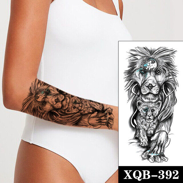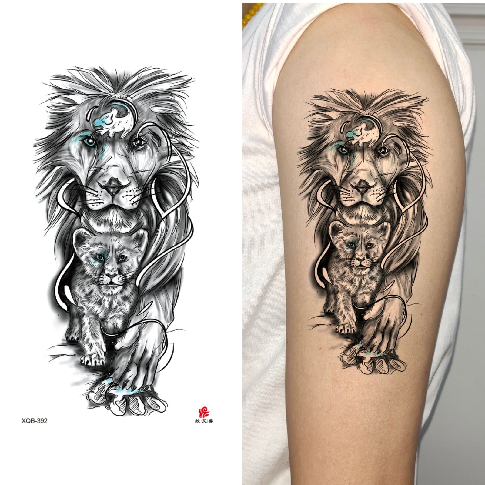 Mother Mum Baby Lioness Cub Womens Temporary Tattoo Fake Sticker Mens Leg Arm