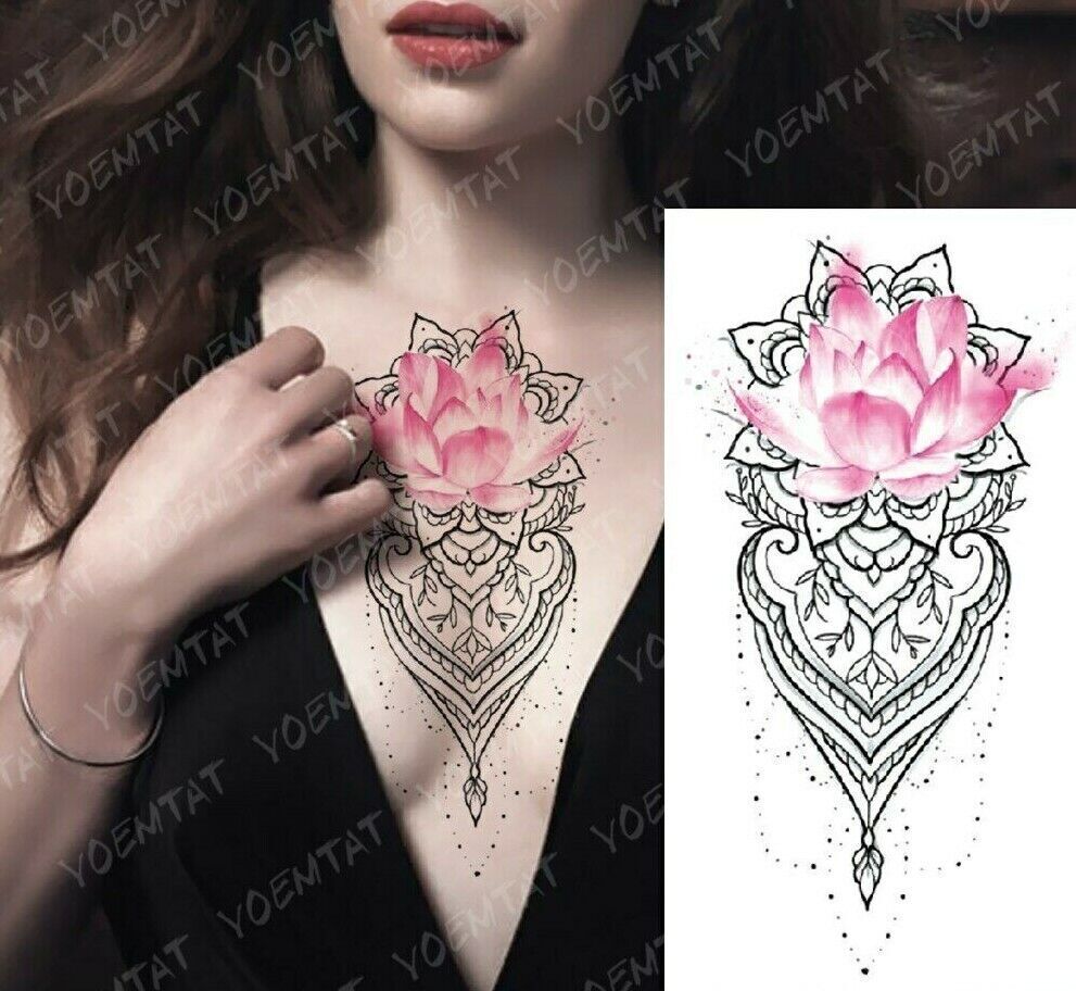 Pink Flowers Temporary Tattoo Lace Mandala Fake Press Sticker Women Mens