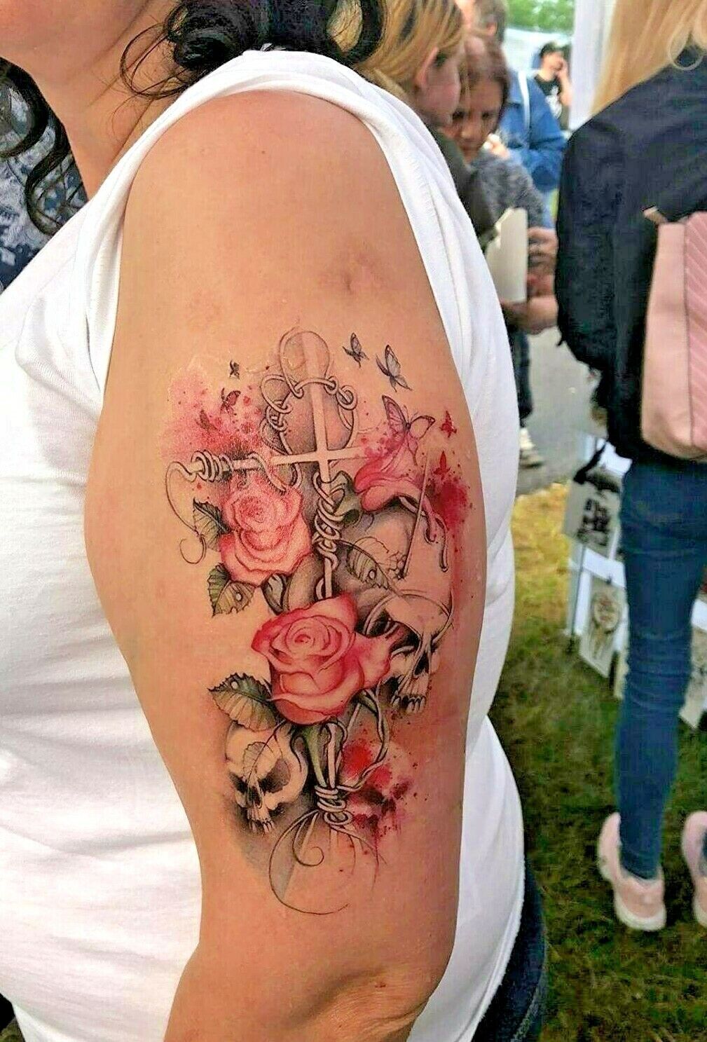 Pink Roses Skulls Temporary Tattoo Womens Tattoos Sleeve Arm Fake Waterproof UK