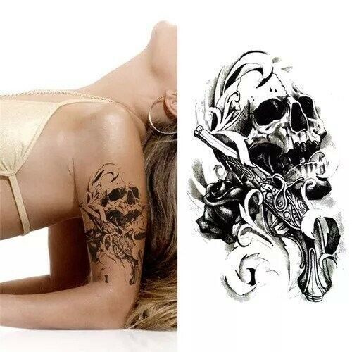 Pirate Skull Roses Pistol Gun Temporary Tattoos Womens Mens Waterproof Tattoo