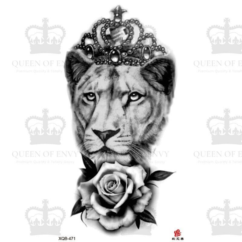 Queen Princess Lion Tattoo Lioness Rose Temporary tatoosFake Sticker Womens Arm