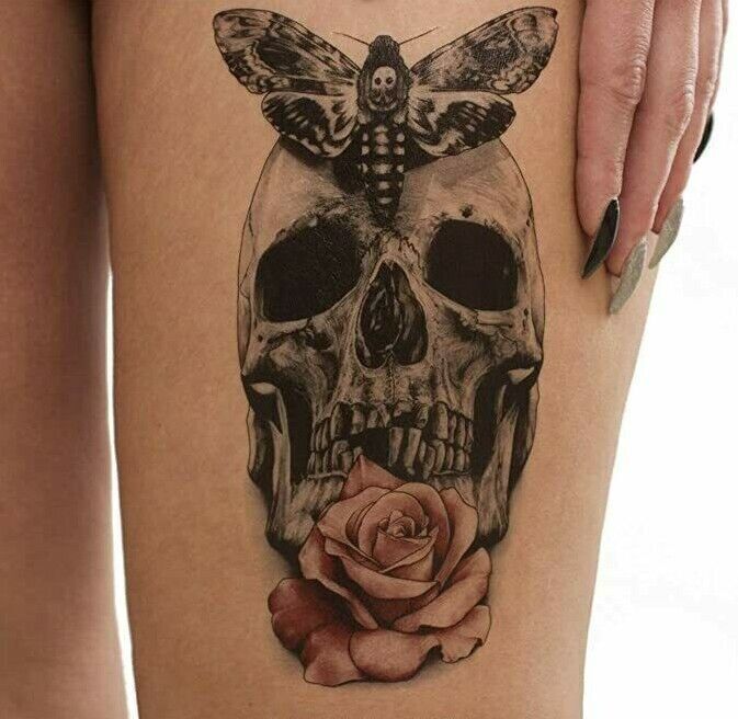 REALISTIC Skull with Rose Moth Temporary Tattoos Sleeve Women Mens Fake Sticker