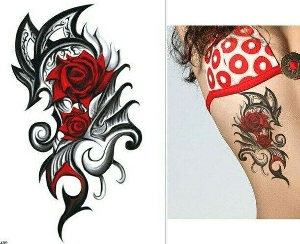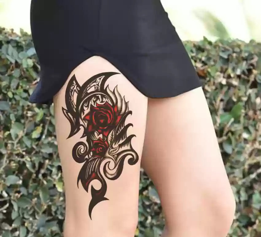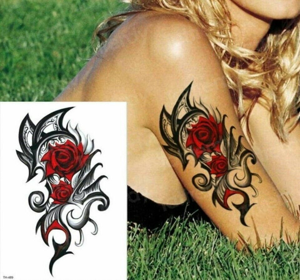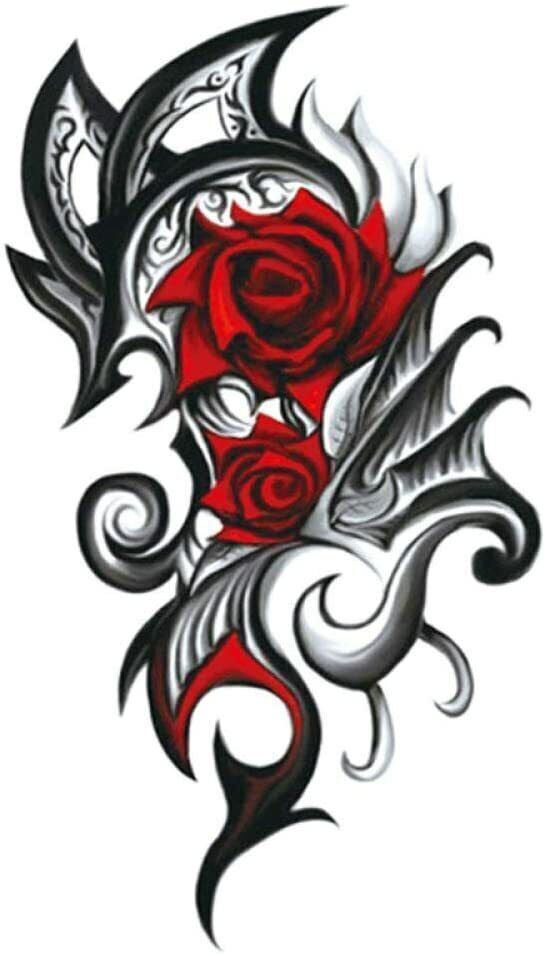 Red Rose Flower Half Arm Temporary Transfer Tattoo Sleeve Women Mens Tribal Leg
