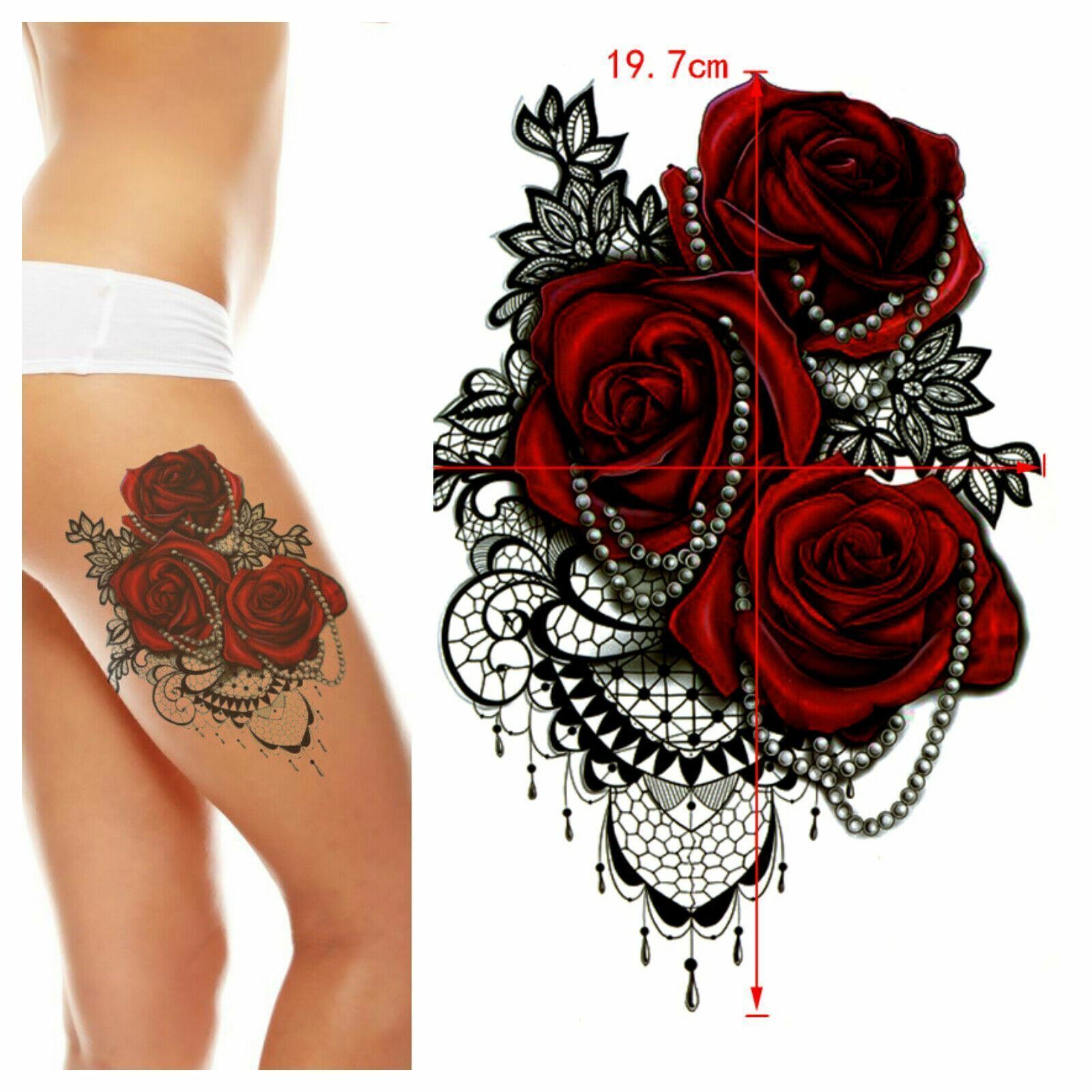 Red Roses Temporary Tattoos Waterproof Sleeve Women Sexy Womens Tattoo