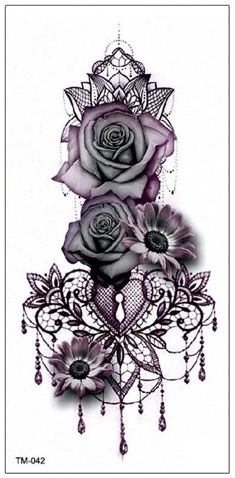 Rose Temporary Tattoo Waterproof Purple Flower Fake Womens Tattoos Arm Leg Body
