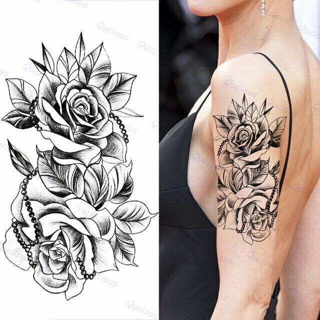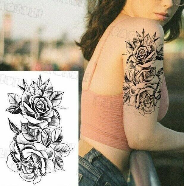 Roses Womens Temporary Tattoo Women Arm Leg Thigh Sleeve Fake Sticker Waterproof