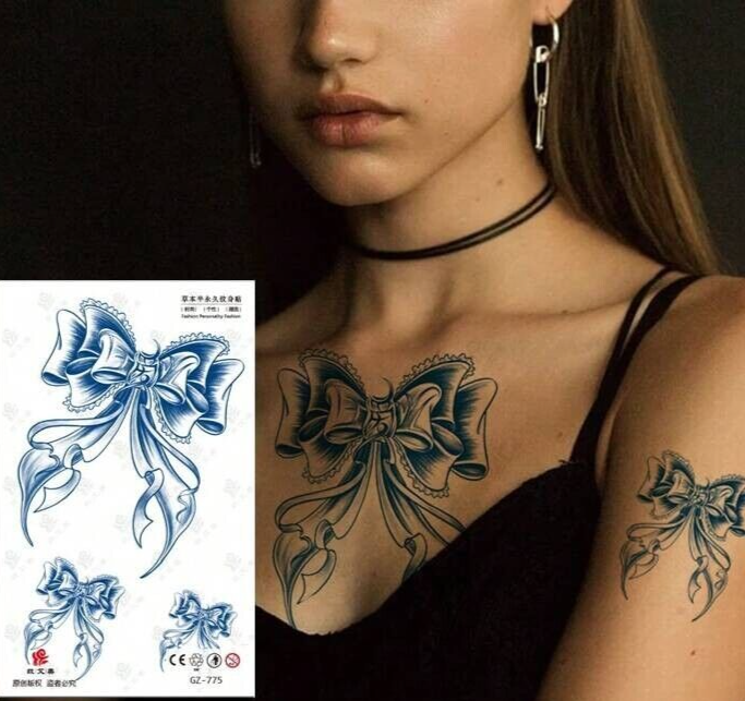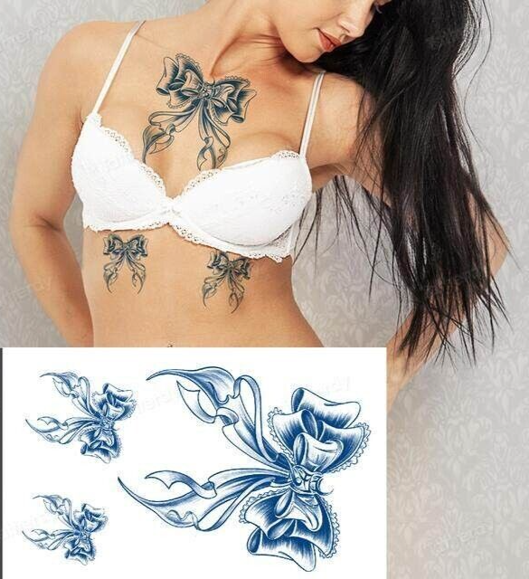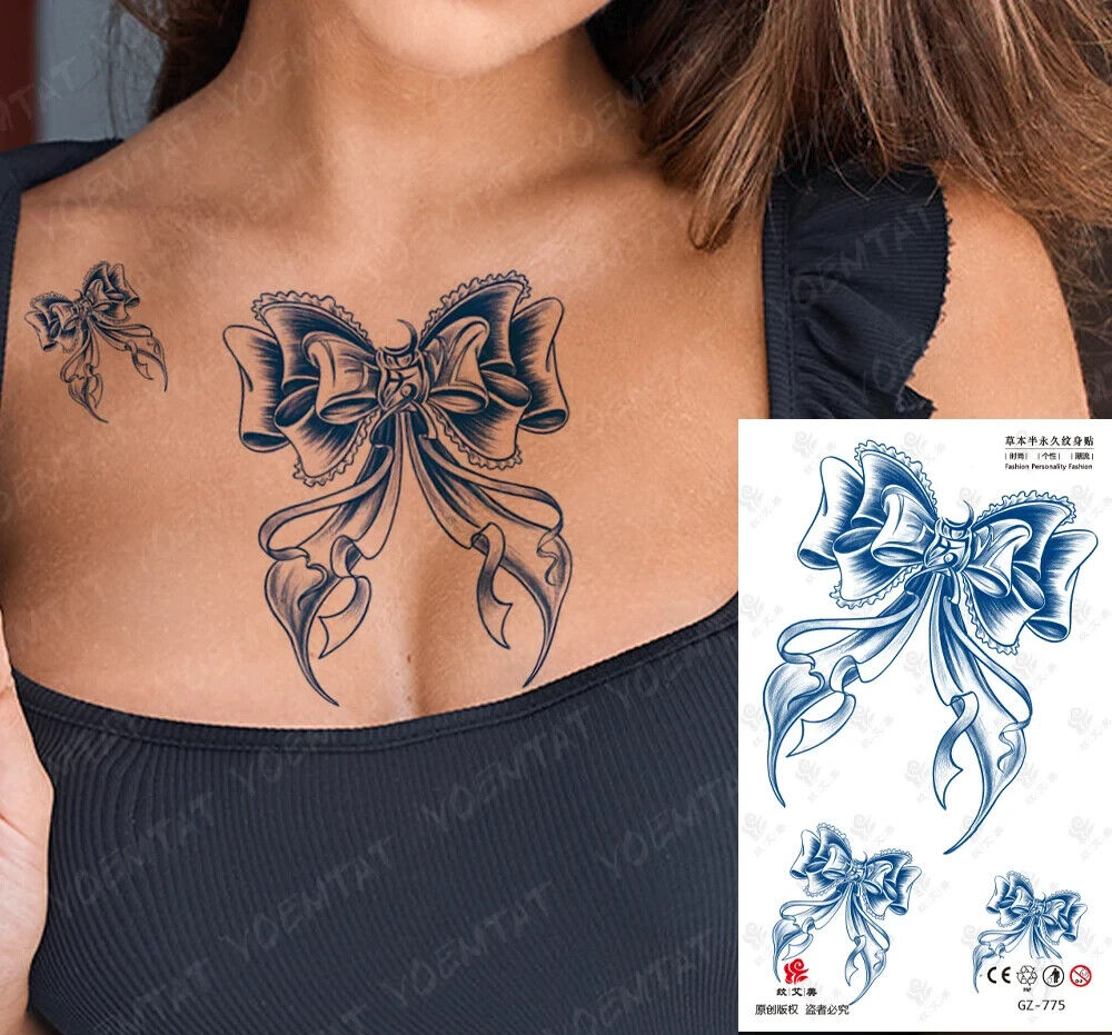 Sexy Bow Womens SEMI PERMANENT Temporary Tattoos Chest Arm Natural Long Lasting