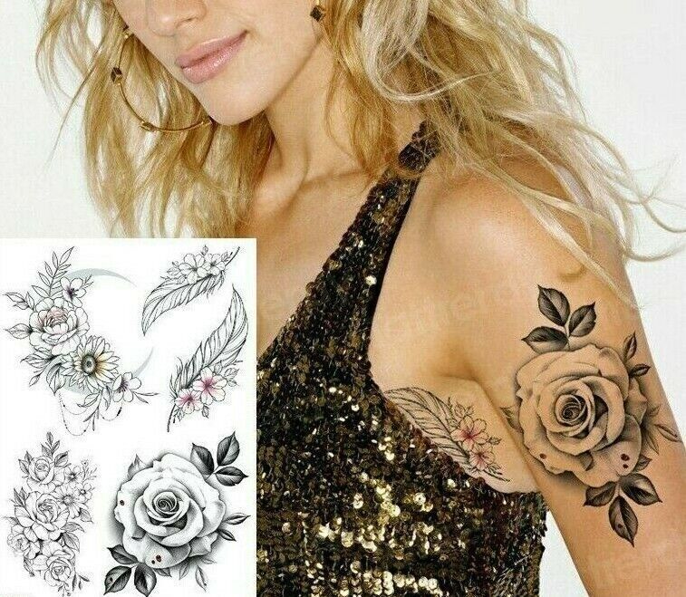 Sexy Collection Roses Flowers Feathers Temporary Tattoo Womens Fake Tattoos UK