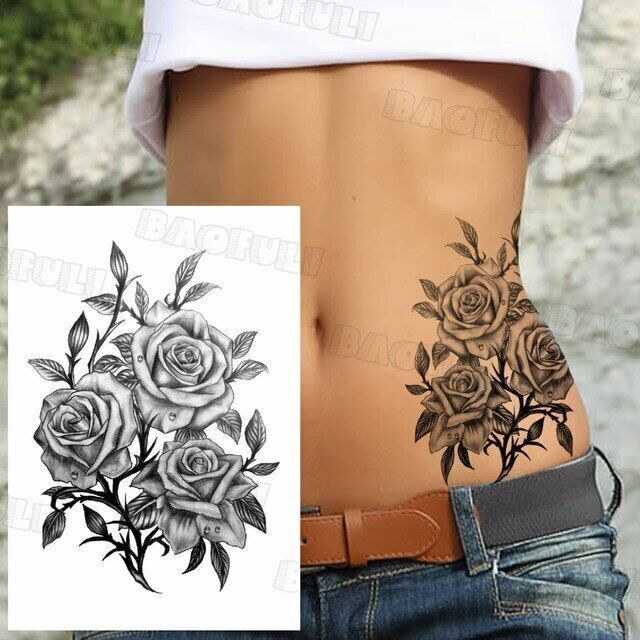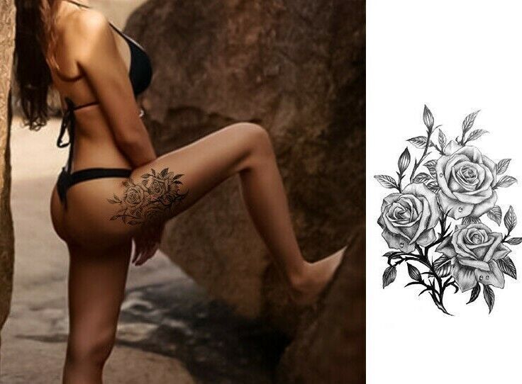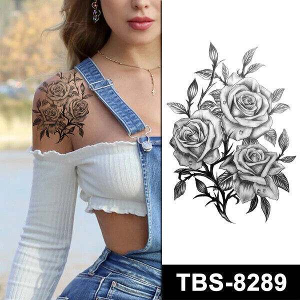 Sexy Rose Tattoo Temporary Tattoos Fake Sticker Womens Arm Leg Thigh Waterproof