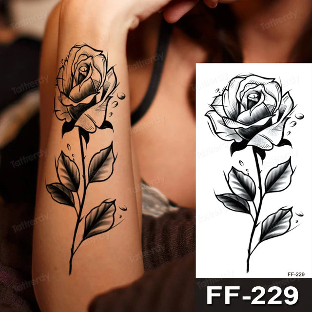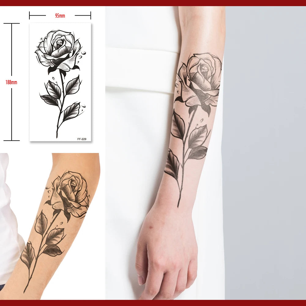 Black Rose Flower Temporary Tattoo Mens Womens Fake Tattoos Waterproof Sticker