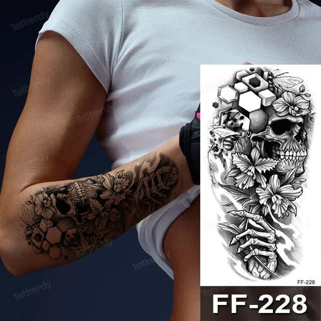 Skeleton Flower Temporary Tattoo Fake Tattoos Waterproof Mens Womens