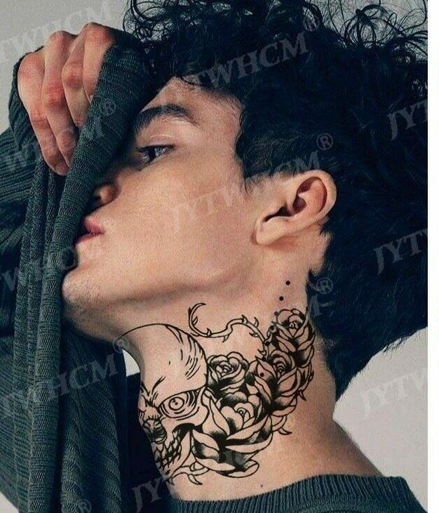Skull Neck Tattoo Womens Mens Fake Arm Waterproof band under boob Arm Tattoos