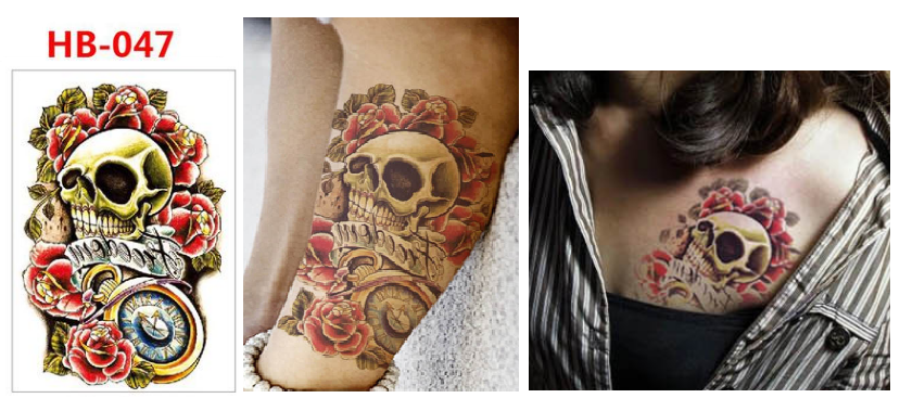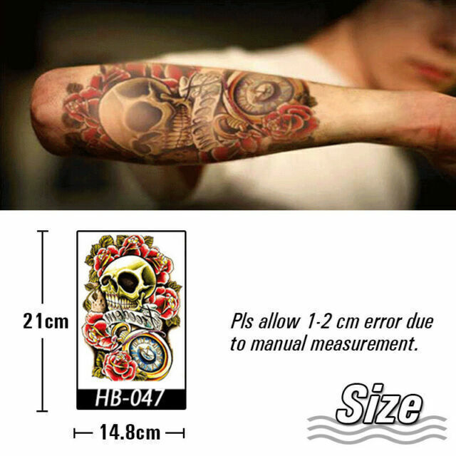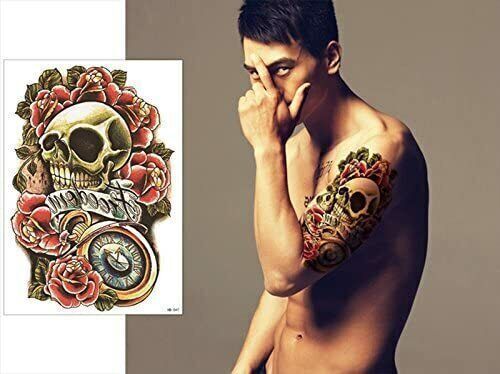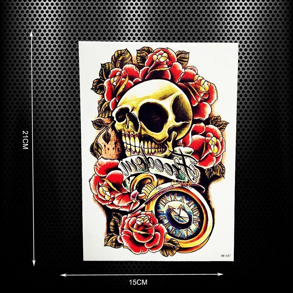 Skull Roses Temporary Tattoo Sticker Women Mens tattoos Waterproof Fake Arm