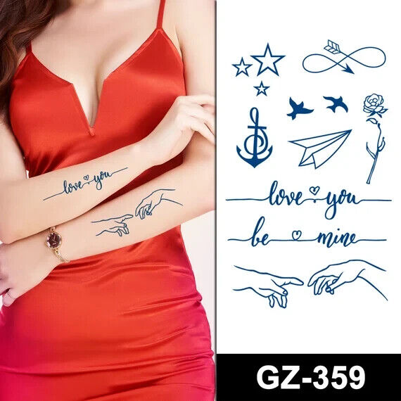 Small Love Star Rose SEMI PERMANENT Temporary Tattoos Long Lasting Womens Mens