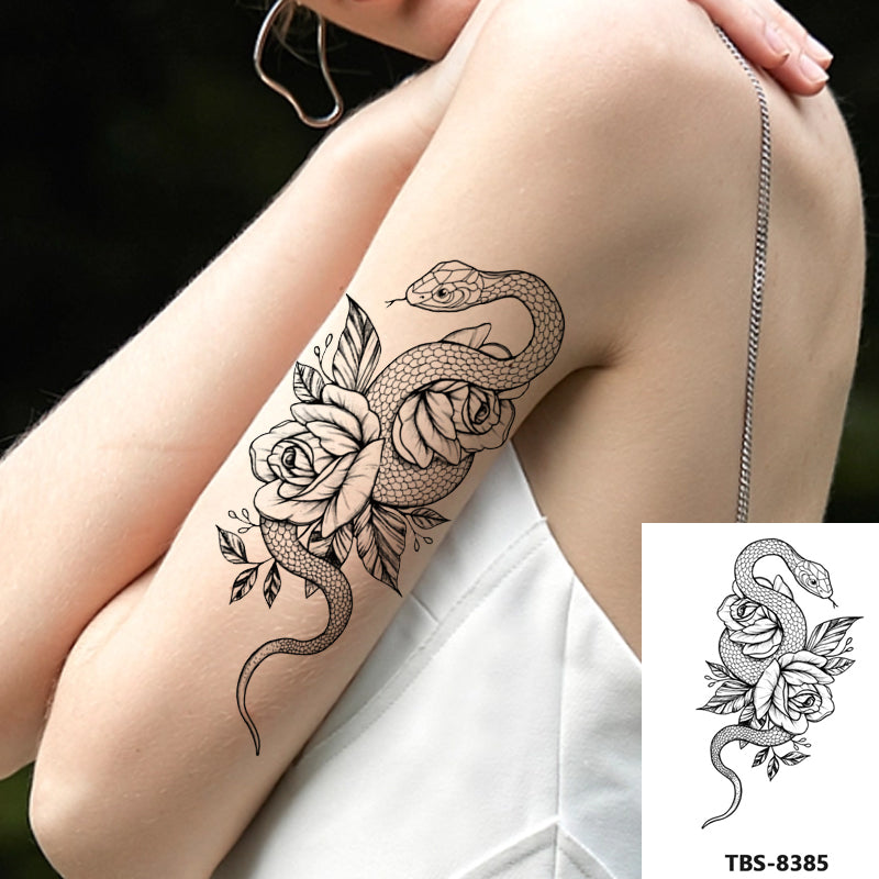 Snake and Roses Arm Tattoo Womens Temporary Tattoos Mens Arm Leg Festival Body