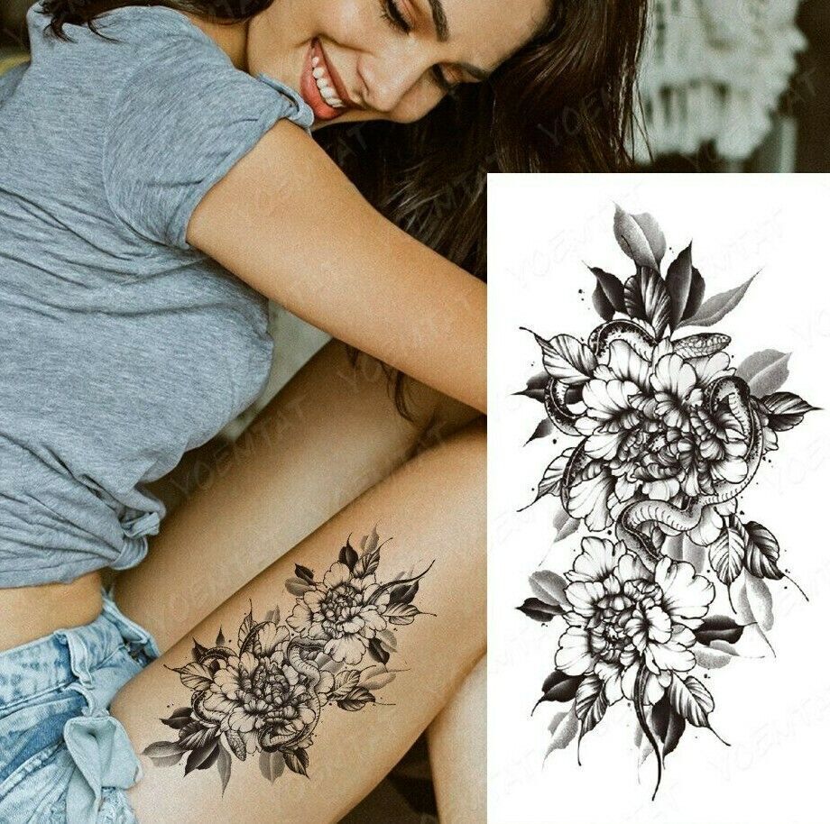 Snake Flowers Temporary Tattoo Fake Womens Waterproof tattoos Arm Leg Thigh Body
