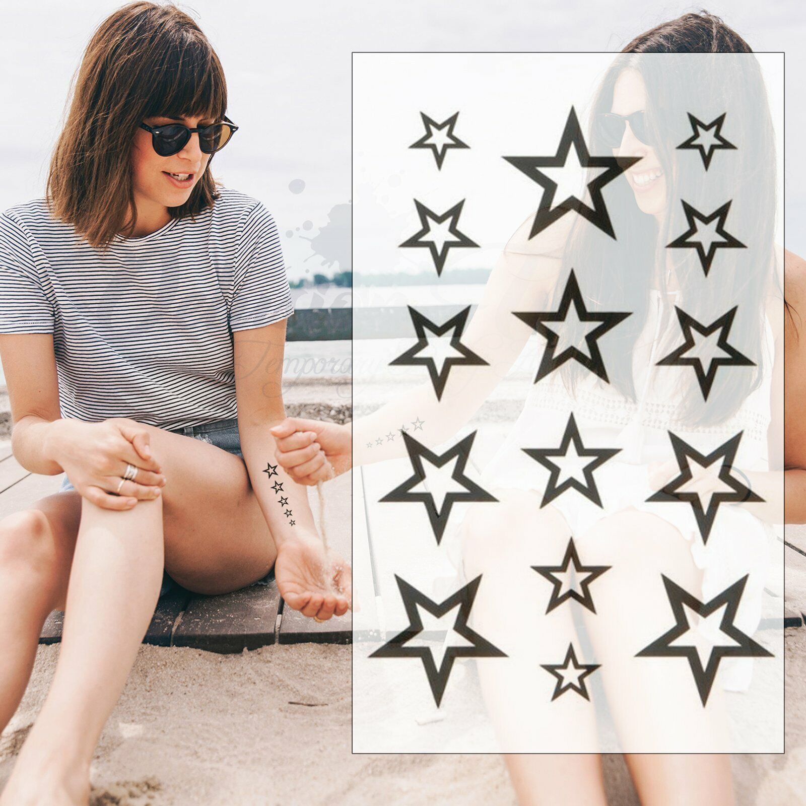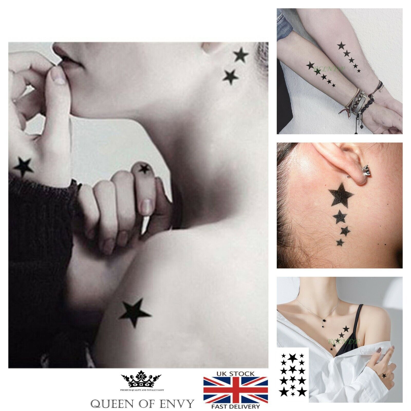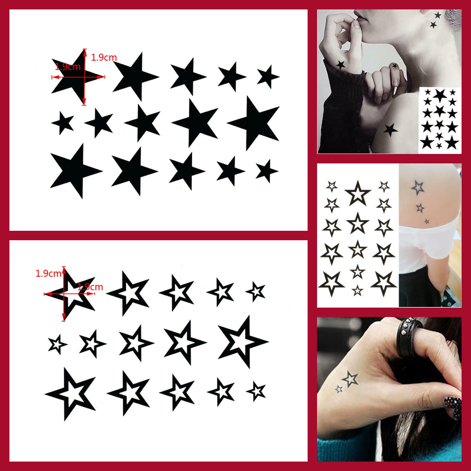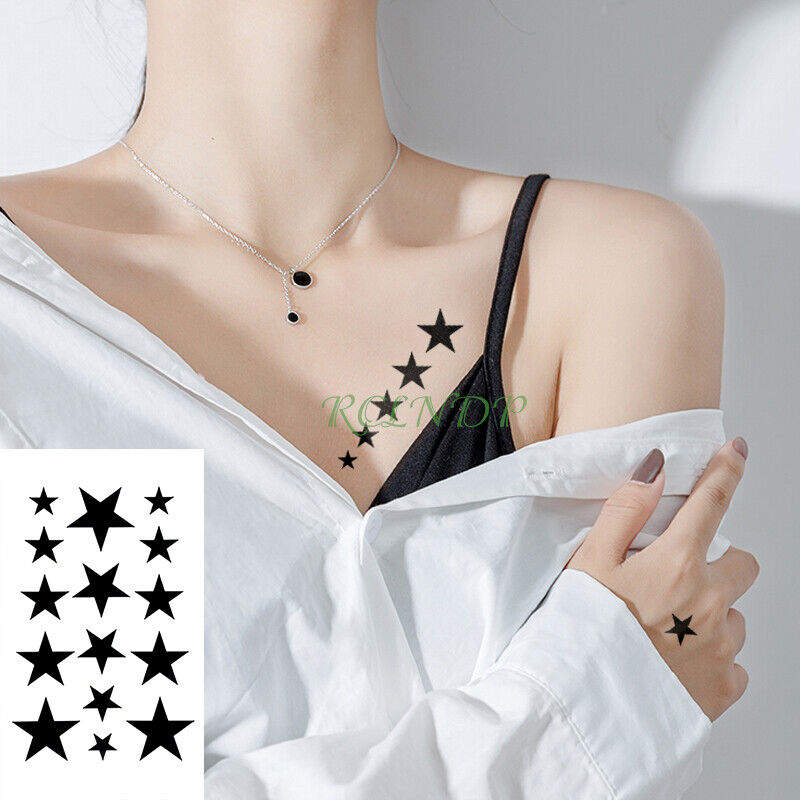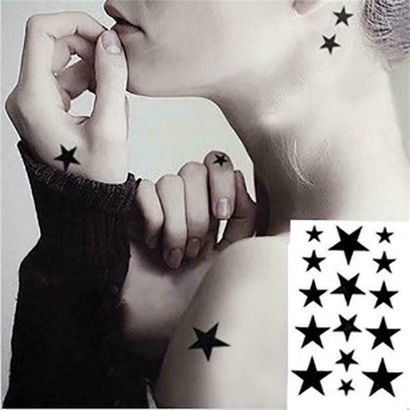 Black Star Stars Temporary Tattoos Neck Solid Womens Mens Fake Waterproof Tattoo