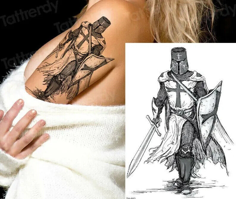Templar Knight Crusader Temporary Waterproof Tattoo Sleeve Women Fake Sticker UK