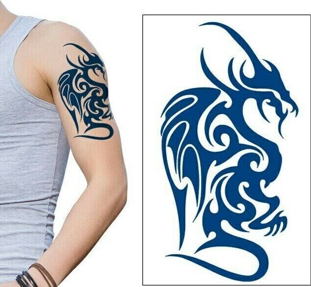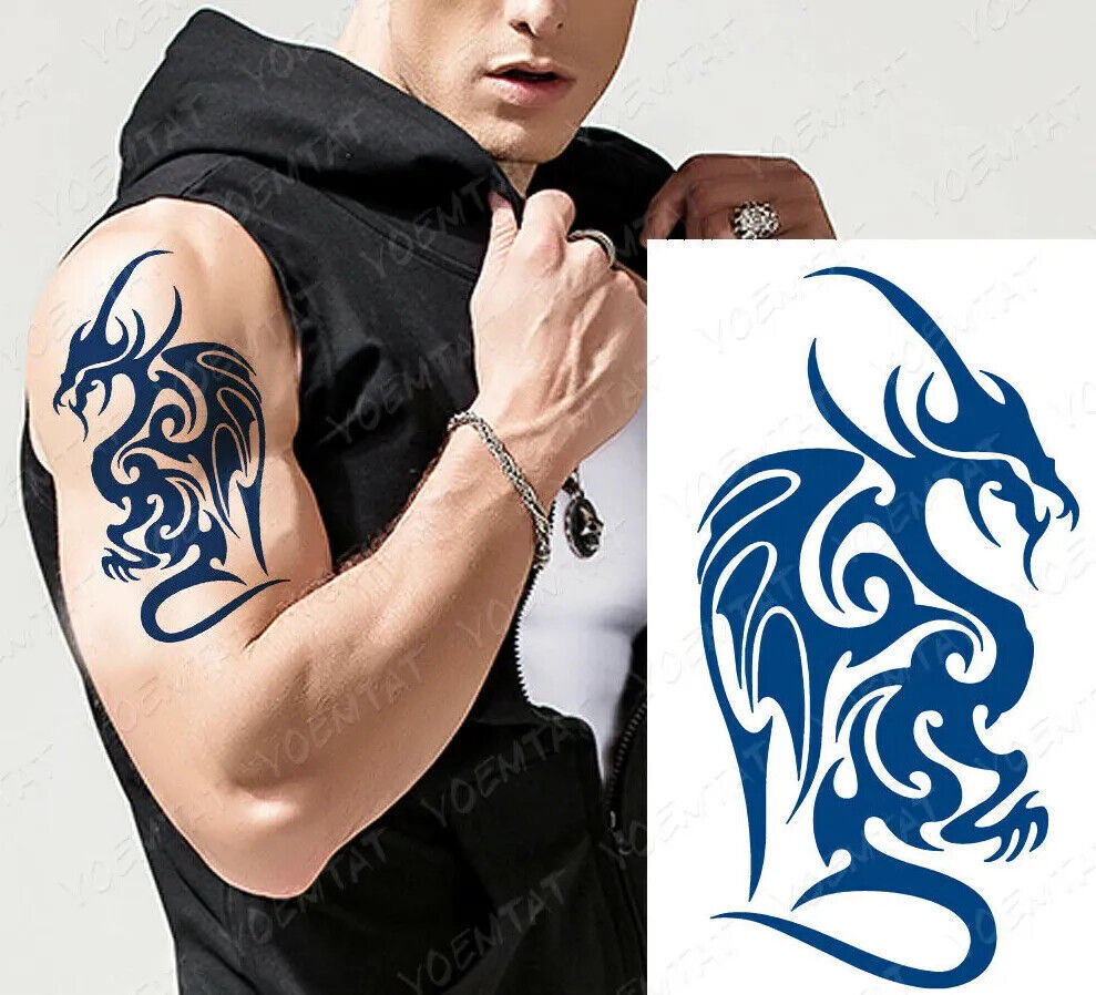 Tribal Dragon SEMI PERMANENT Womens Mens Temporary Tattoos Waterproof Body Art