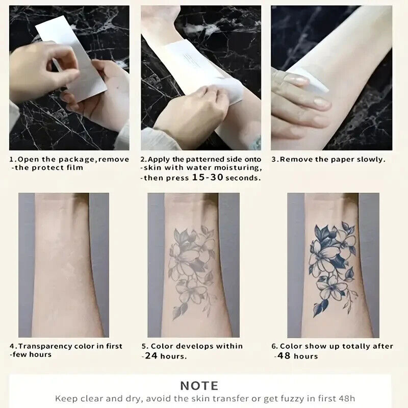 Full instructions sent with every tattoo.Tattoo appears a dark blue or dark grey depending on your skin type.