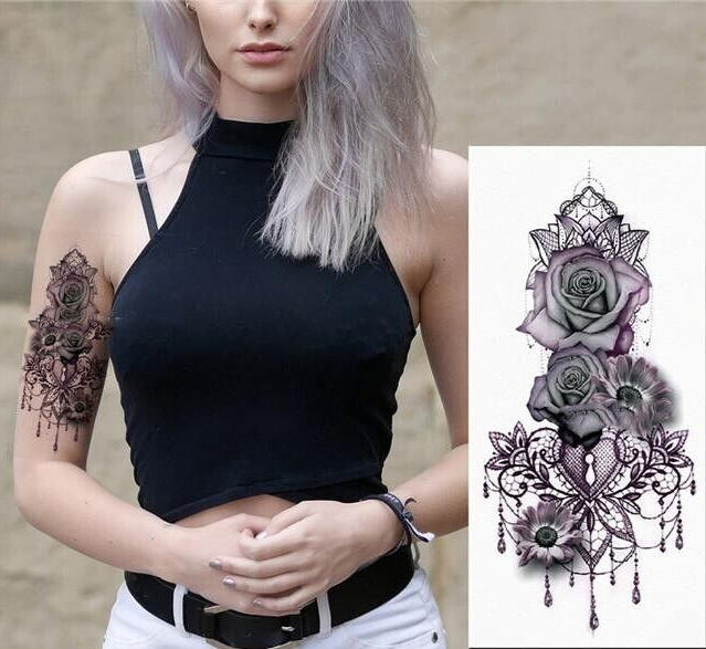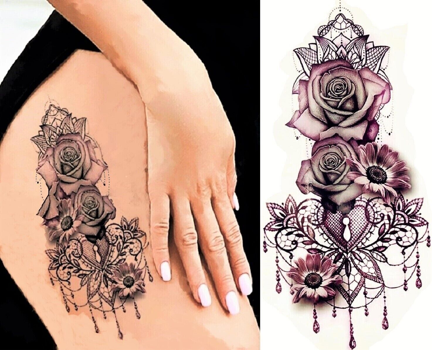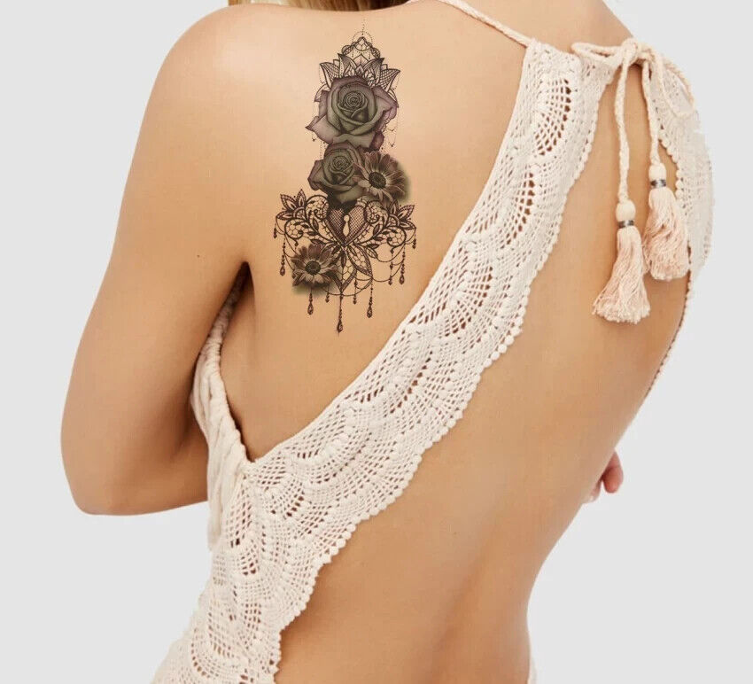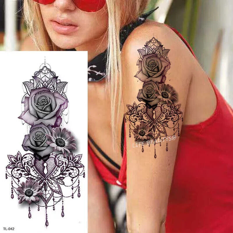 Womens Roses Flower Temporary Tattoo Waterproof Body Back Arm Leg Pretty tattoos